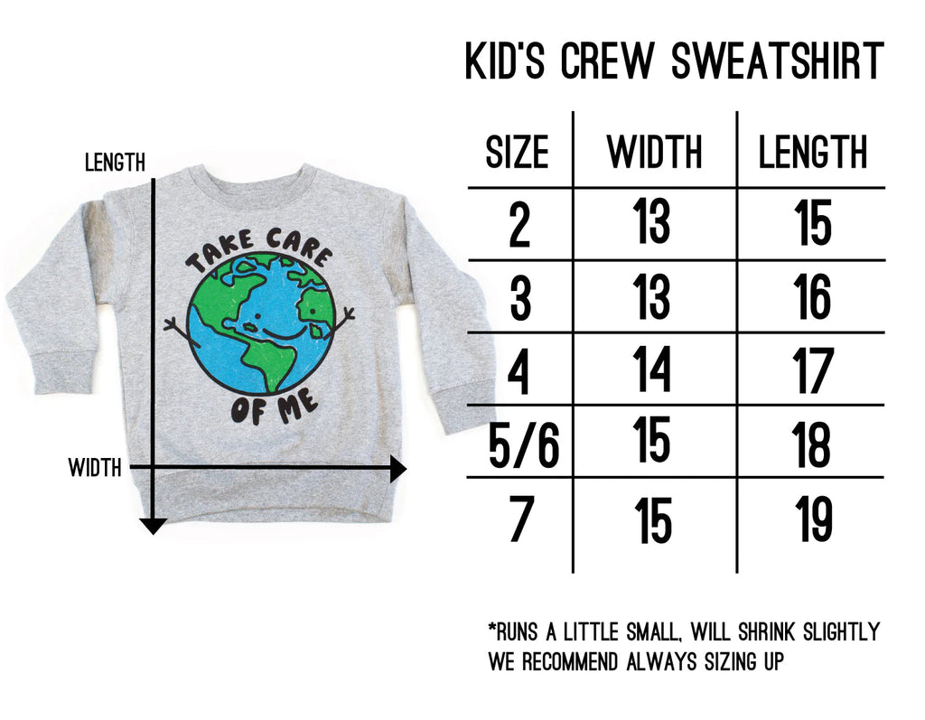 Crew necks run a little small, I always recommend sizing up for these. Even if oversized they look cute with cuffed sleeves or paired with leggings from our buddies at Lilla Barn.